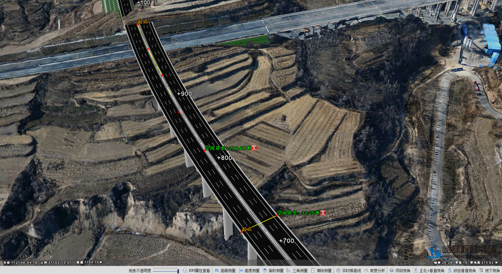 距离测量是指在场景中测量的空间距离,不计地形而直接相连的长度。