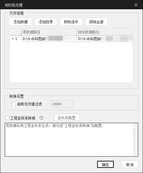 添加后列表中会出现源数据路径和目标数据路径(转换后数据存储路径),转换后的数据和源数据在同一目路径下。