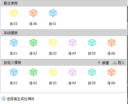 2、添加体有两种方式,一种是添加默认样式,另外一种是选择一个模板进行连续绘制。