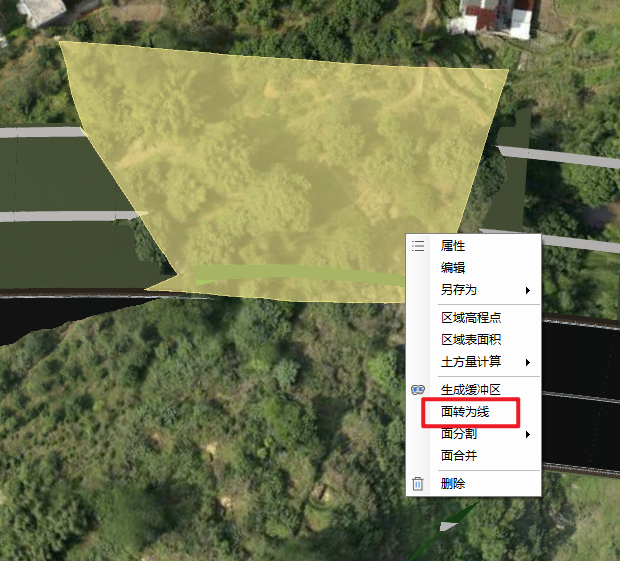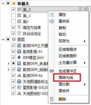 ②在地图场景中选择面要素,右键菜单 -- 面转线