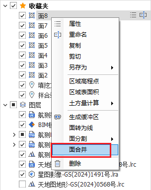 ③在左侧图层栏上,点击一个面,按住键盘上的Shift键,再选择一个或多个面要素,右键 -- 面合并