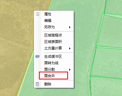 ②在地图场景中选择面要素,右键菜单 -- 面合并,以该面为主,再在场景中选择与之合并的第二个面,进行合并。