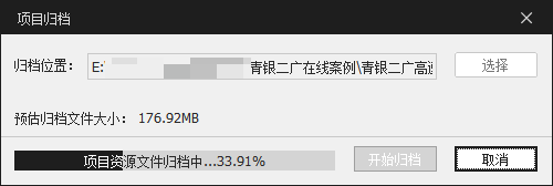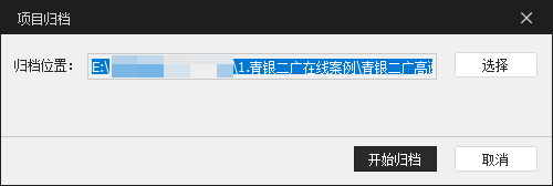 2、弹出项目归档属性框,归档位置默认与当前工程文件同级目录,可自行选择归档路径。