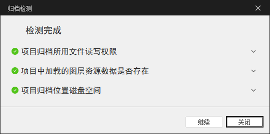 4、检测完成后,如果不符合,会展示出具体错误信息,并且不能继续归档,需要根据错误信息进行修改。如果全部符合,可点击“继续”进行归档。