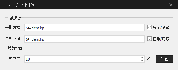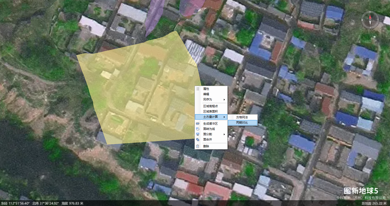 通过面计算:在场景中已有的面要素右键,选择“土方量计算”--“两期对比”,按照该面范围进行计算。