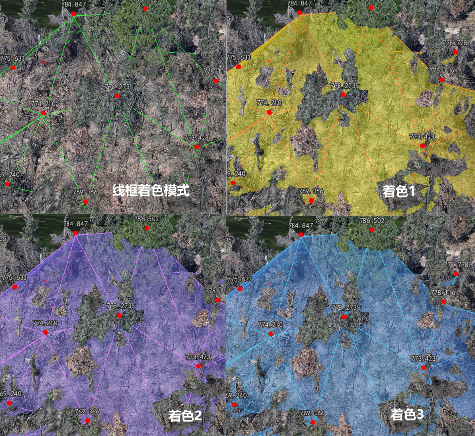 有五种不同的着色模式,默认是着色1,可以切换不同的模式进行显示三角网。