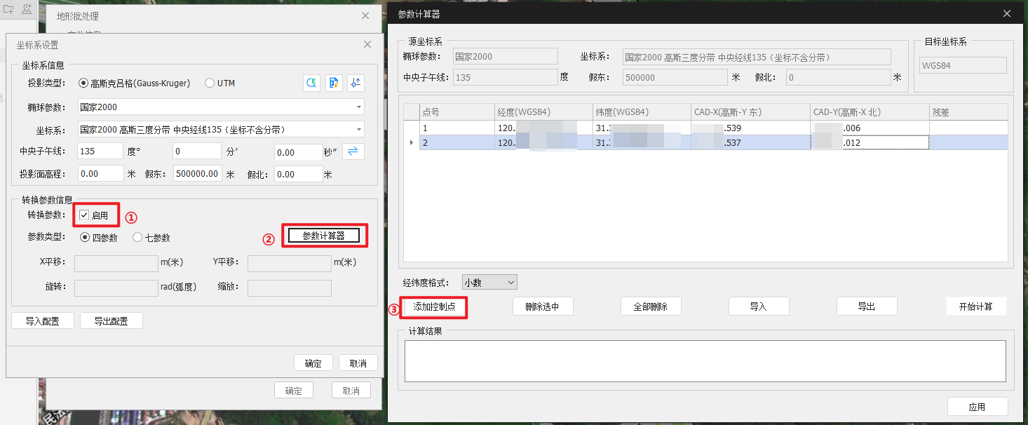(3) 勾选“工程坐标系转换”,自动弹出坐标系设置对话框。