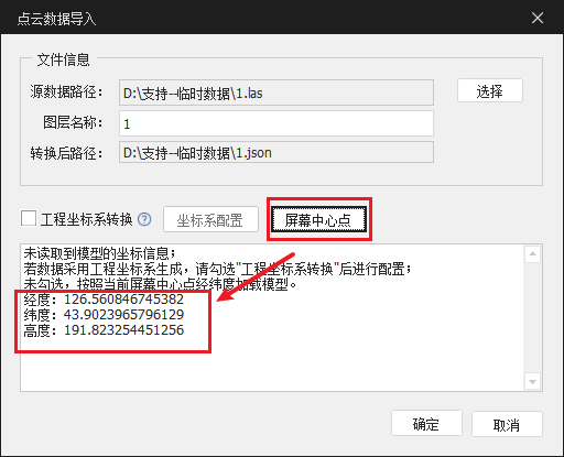 一般点云内都含有坐标信息,软件会自动读取到并展示在文本框内,此类数据直接加载即可。