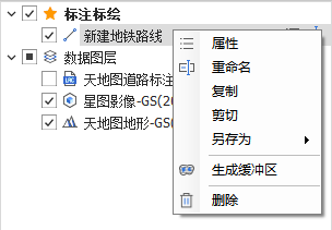 (1)在左侧树上选择某个要素,右键弹出该要素菜单;