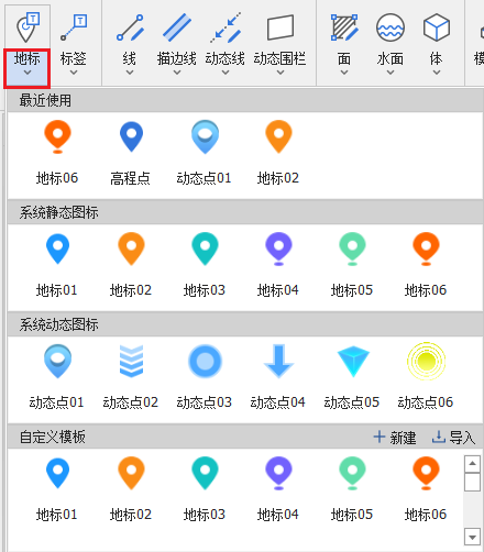 (1)点击“地标”功能下方按钮,展开模板列表。