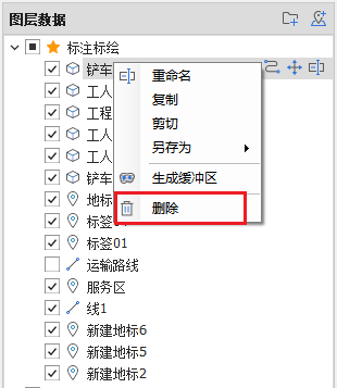 在左侧图层数据栏中,可单独删除某个模型或在图层上右键选择“删除内容”,一键将图层内所有模型和要素都删除。