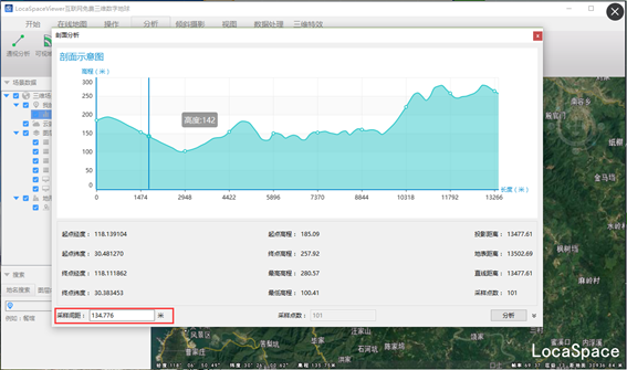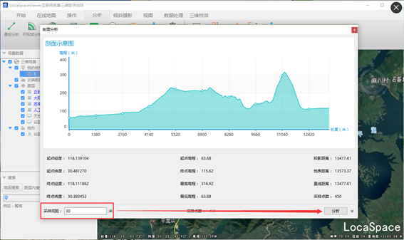 默认采样间距不一定合理,建议修改为20或者30,修改后,重新点击分析: