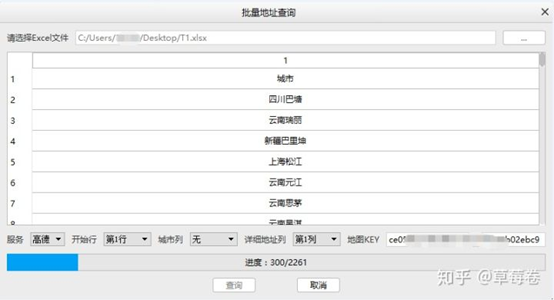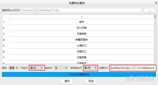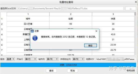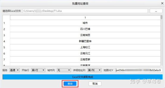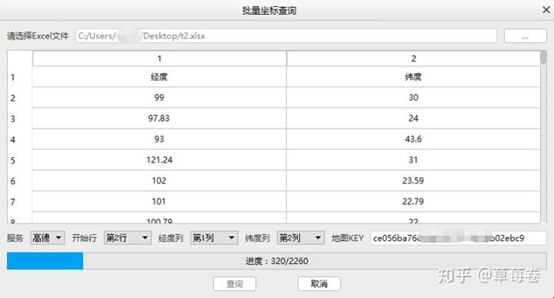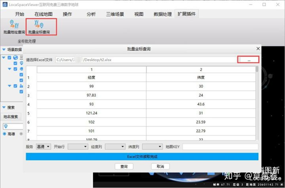点击批量坐标查询,选择Excel文件: