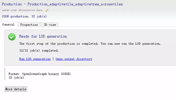 数据生成成果后,点击production下的General下的Run LOD