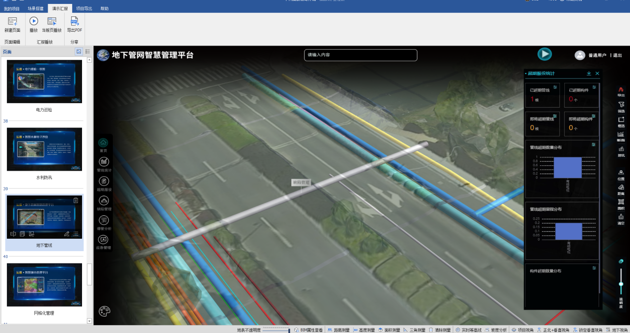 - 老旧设施寿命评估汇报:整合设施BIM模型与历年检测数据,在三维场景标注老化部位;可模拟不同维护策略下的寿命延长效果,生成“现状评估-风险预警-优化方案”三维汇报材料供决策。