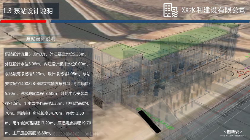 - 水利水电设计方案汇报:大坝、厂房、泄水结构BIM与流域地形、水文数据融合,立体论证结构布置与环境影响。
