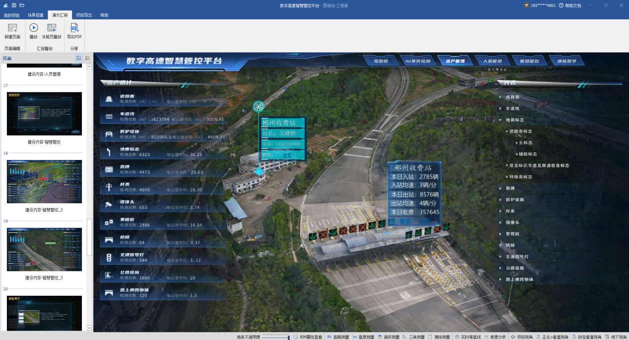 - 真三维实时交互:360度全方位展示项目情况,汇报过程中随时浏览。