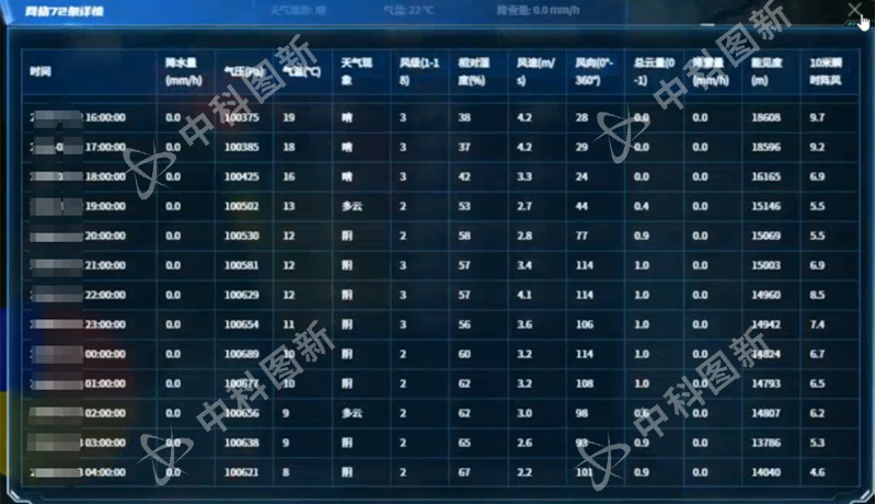 - 大风预报:微观气象网格化预报,识别超过杆塔设计风速的区域。