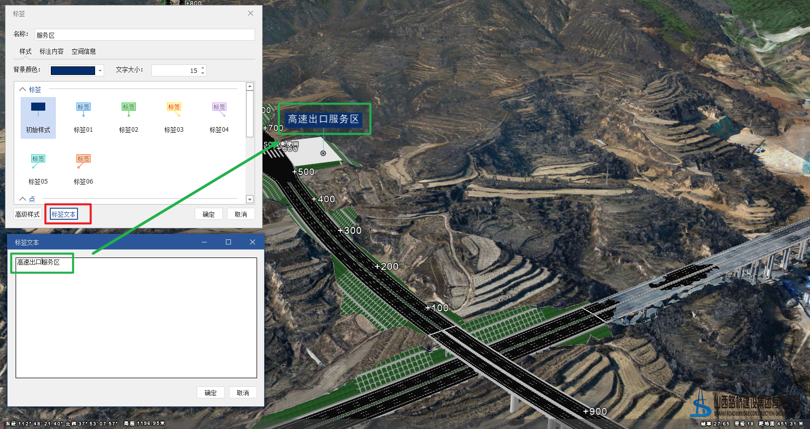 (3)同样可在属性框内修改标签名称、样式、标注内容、空间信息。