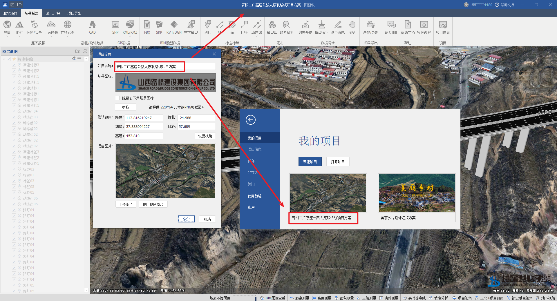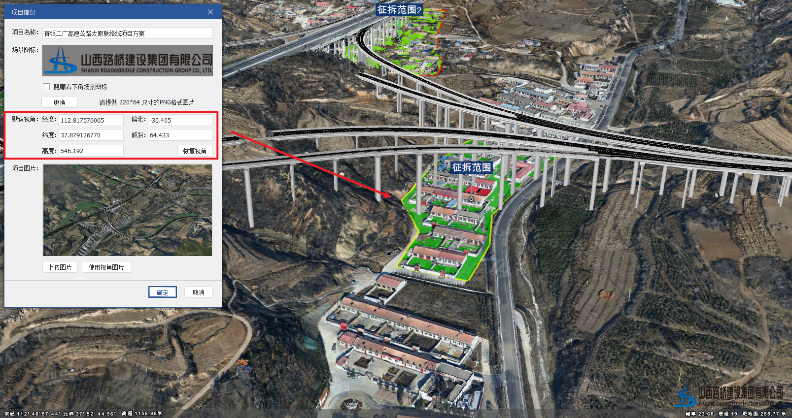 项目信息主要是用于设置当前整个项目工程文件的名称、场景图标(右下角logo)、初始视角、项目图片。