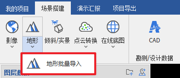图新说支持tif、lrp格式的地形数据直接导入,点击“地形”功能,直接选择文件即可导入。