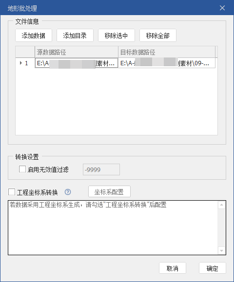 添加后列表中会出现源数据路径和目标数据路径(转换后数据存储路径),转换后的数据和源数据在同一目路径下。