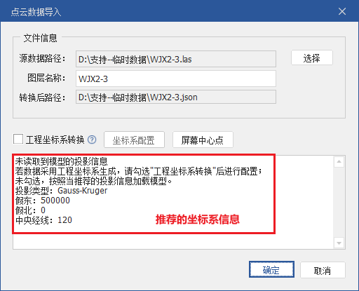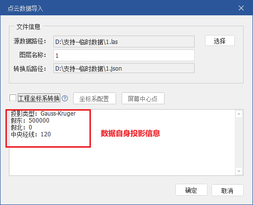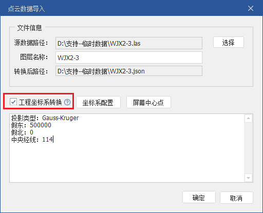 如果需要按照其他坐标系导入,需要勾选“工程坐标系转换”进行配置(不会改变数据本身的投影信息)。