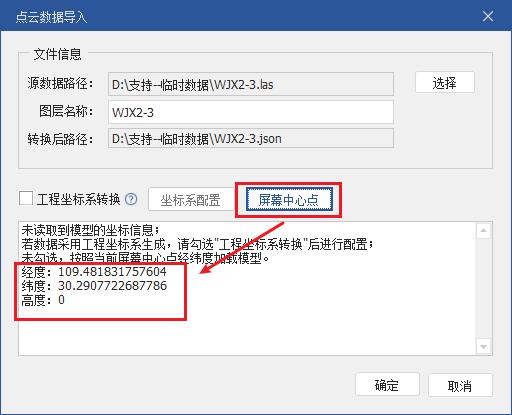 一般点云内都含有坐标信息,软件会自动读取到并展示在文本框内,此类数据直接加载即可。