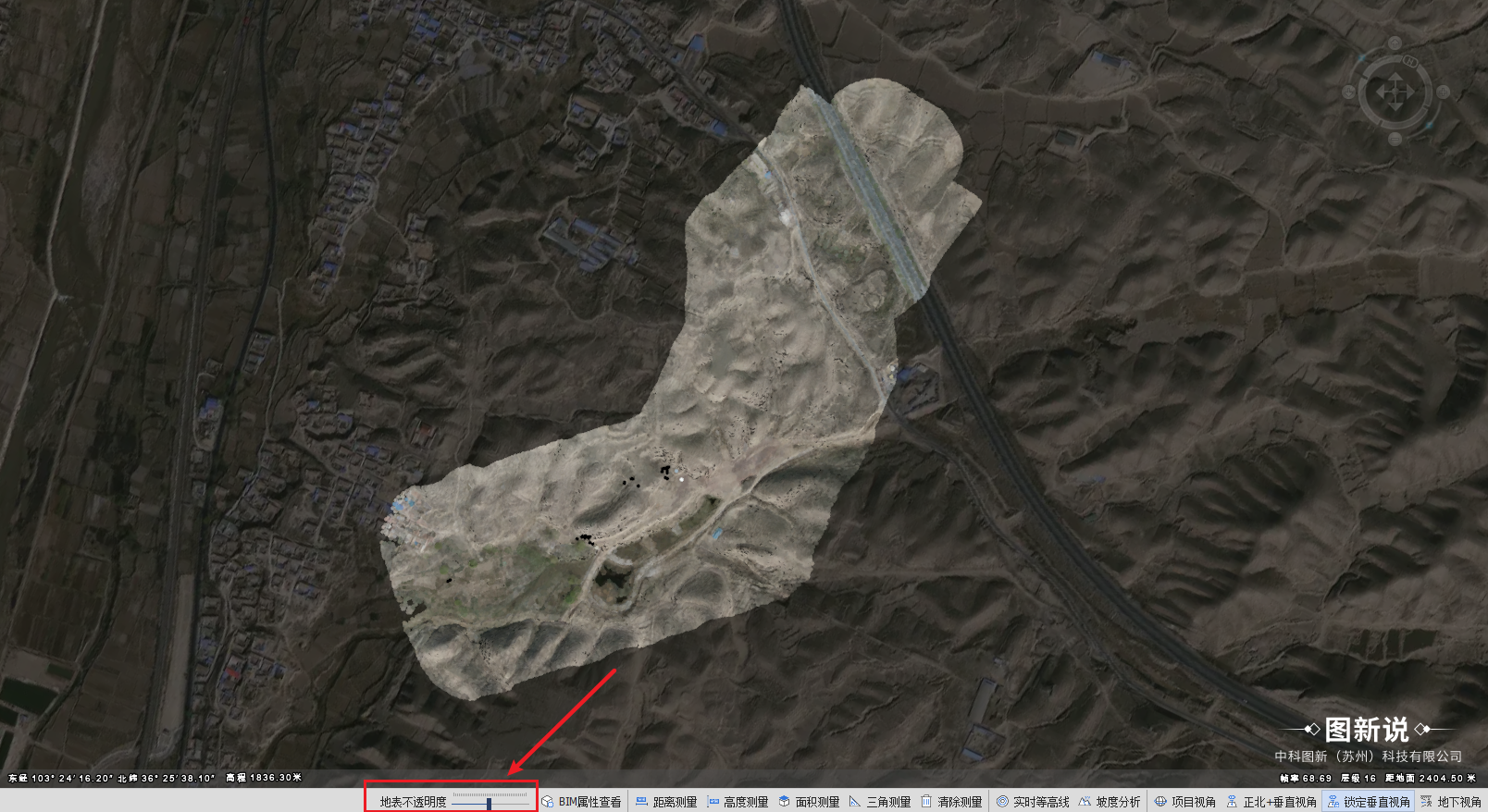 如果数据中心点在地形以下,会自动开启50%地表透明度,方便看清地下部分数据。