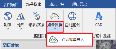 点击点云转换下面箭头展开,再点击“点云批量导入”,选择一个或多个las格式点云文件。