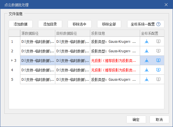 - 坐标系统一配置:为列表中所有无投影的数据统一配置工程坐标系。