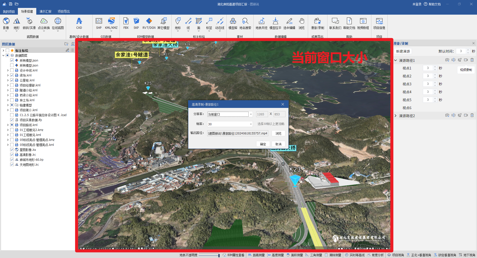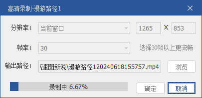 图新说“视频录制”功能,是指可以将预先设定好的漫游路径飞行过程输出一份超清晰高质量视频,用于项目视频演示、交付方案成果等。