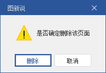 ⑥删除:点击删除按钮,提示:是否确定删除该页面,点击【删除】将当前选择的页面删除,选择取消则关闭提示窗口,并且不删除页面。