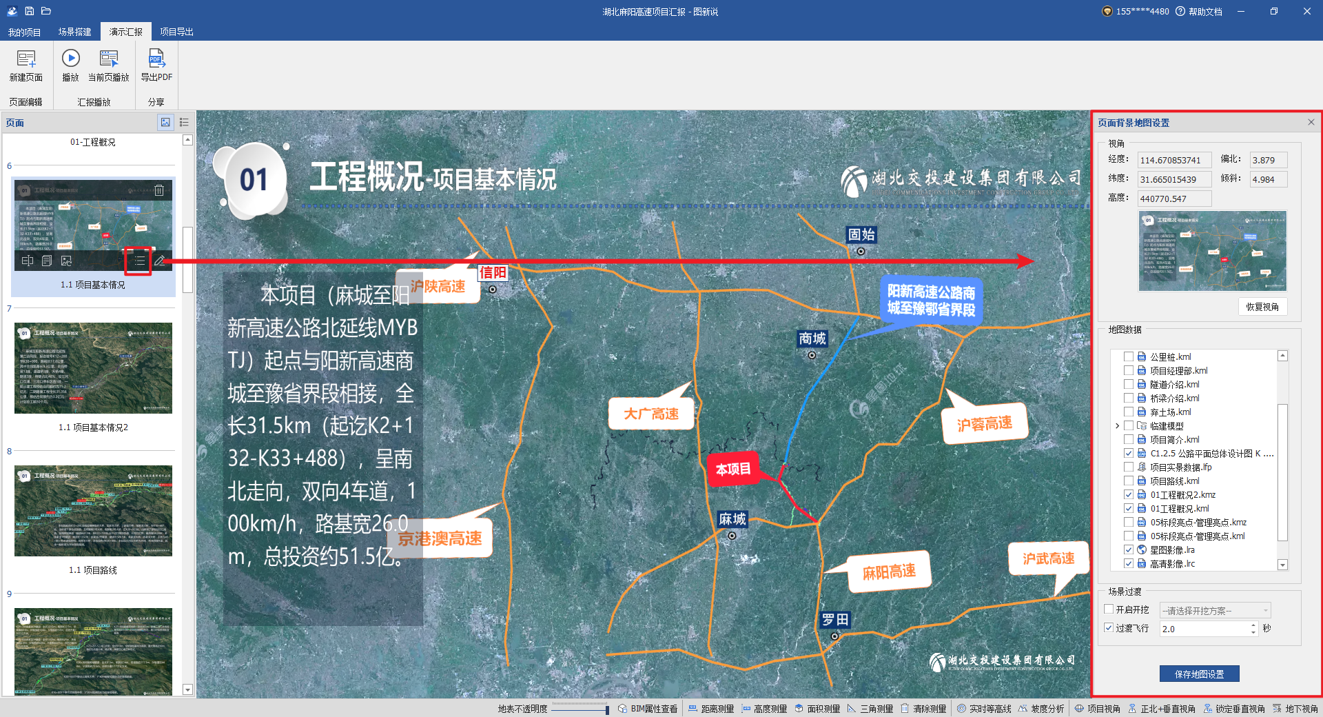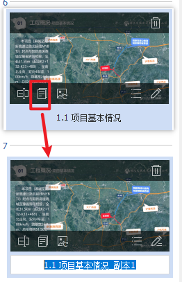 ②复制页面:点击复制页面按钮后,复制当前选择的页面,自动在当前页面的下方新增一个一样的页面(包括ppt页面内容、页面视角、加载的数据、是否开启开挖、过渡飞行信息),自动命名为该页面名称+副本,并且为重命名状态,输入名称后回车或鼠标点击空白处,即可确认更改。