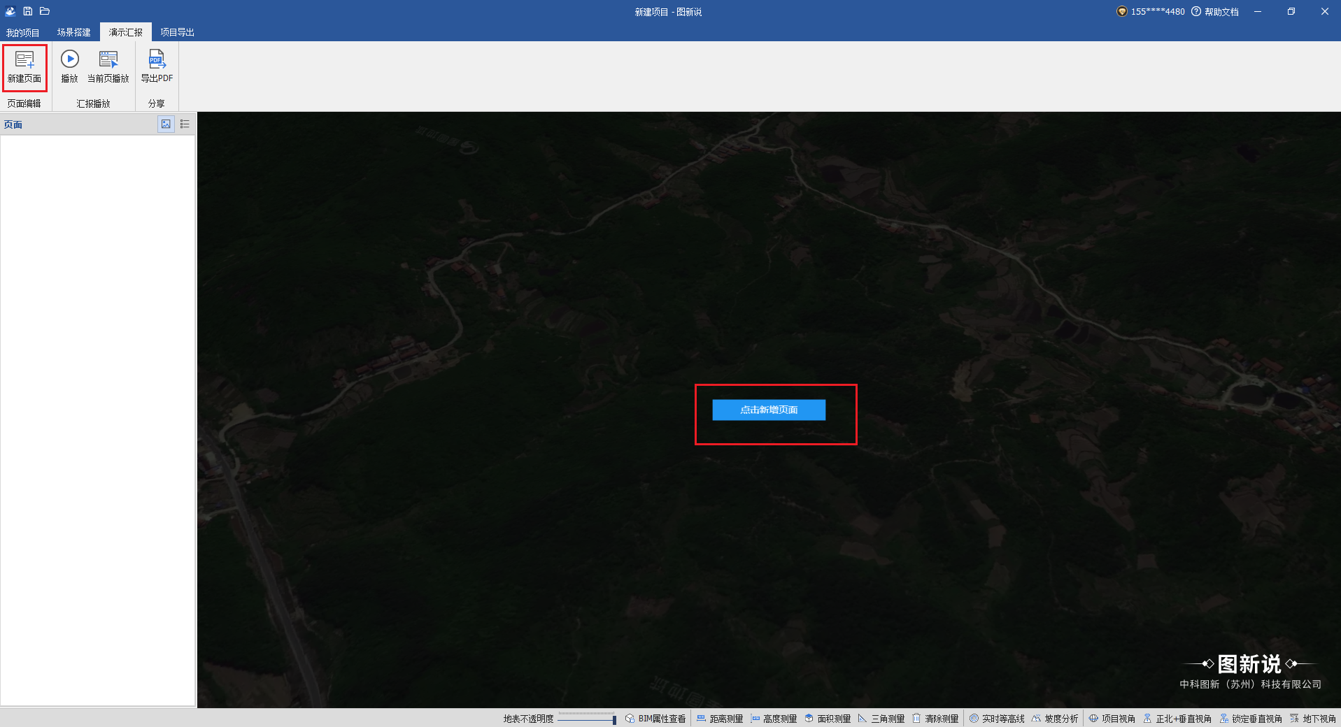 点击左上角“新建页面”或者屏幕中心“点击新增页面”创建第一个PPT页面,第一个页面创建之后再创建页面,只能点击左上角“新建页面”按钮。