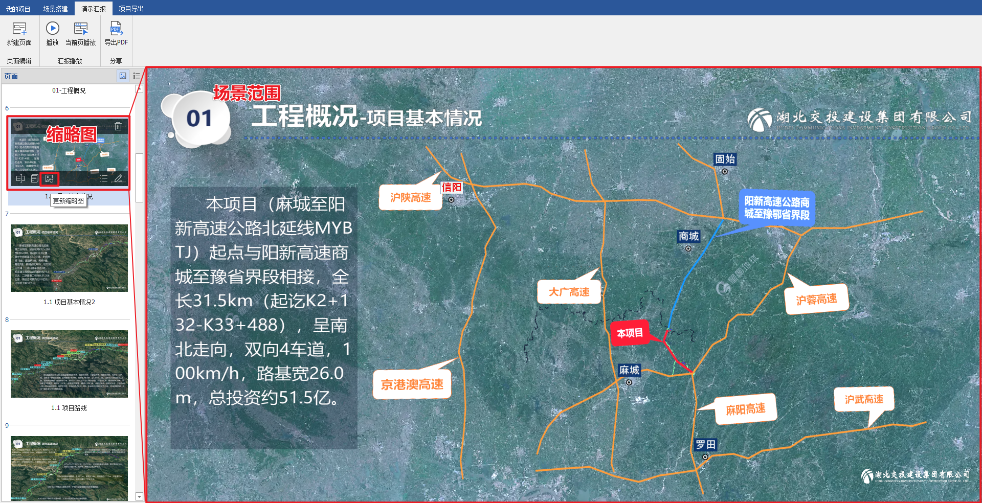 ③更新缩略图:点击更新缩略图按钮,将当前场景展示的内容,更新到缩略图上,保持页面场景视角和缩略图一致,并且导出PDF是根据缩略图进行生成的。