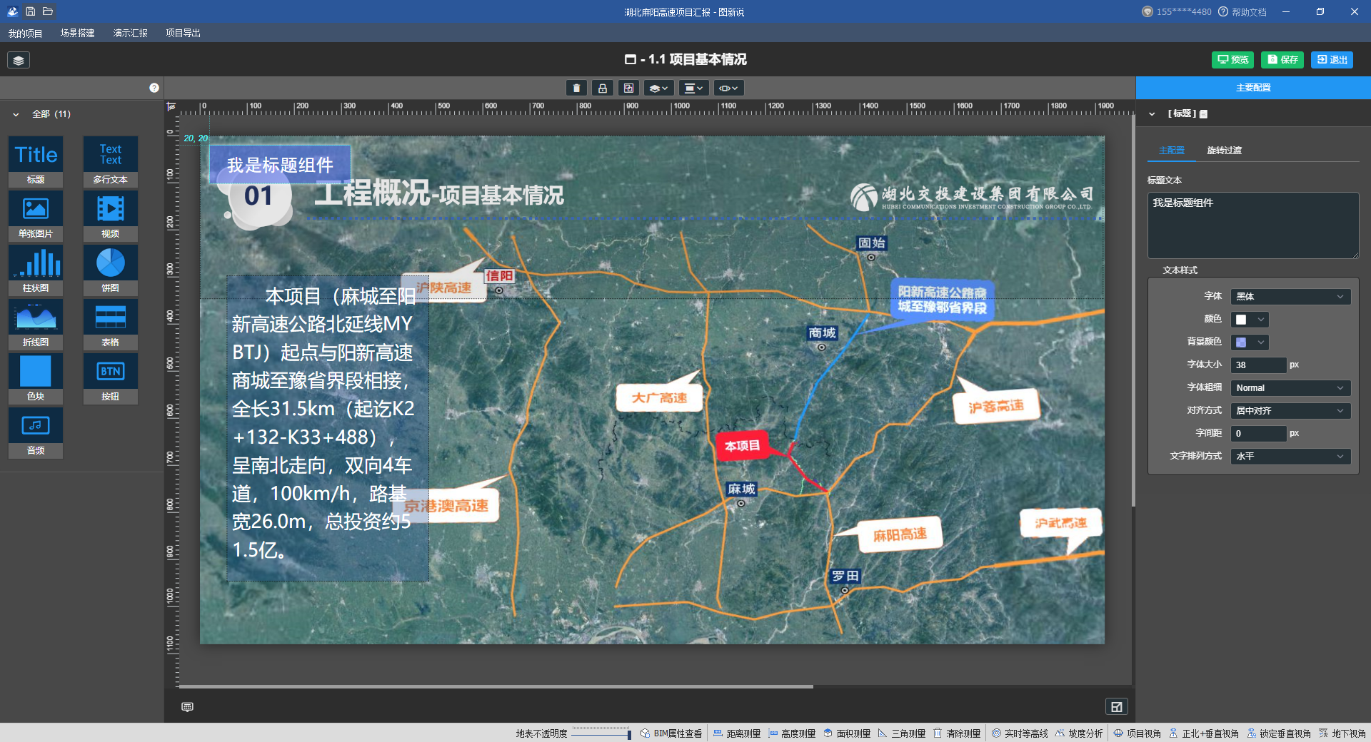 ⑤编辑页面:点击编辑页面按钮,进入到PPT页面编辑界面,可进行添加PPT内容,包括标题、文字、图片、视频等信息,具体使用请看页面编辑。