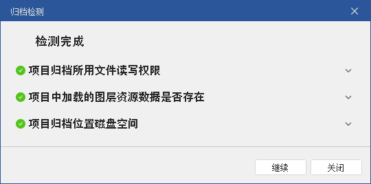 4、检测完成后,如果不符合,会展示出具体错误信息,并且不能继续归档,需要根据错误信息进行修改。如果全部符合,可点击“继续”进行归档。
