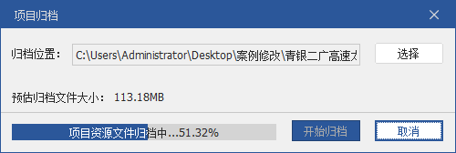 2、弹出项目归档属性框,归档位置默认与图新说工程文件同级目录,可自行选择归档路径。