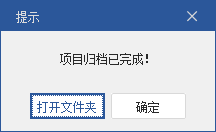 5、归档完成后,提示是否打开文件夹,点击“打开文件夹”自动弹出归档内容所在文件夹,点击“确定”即关闭提示窗口。