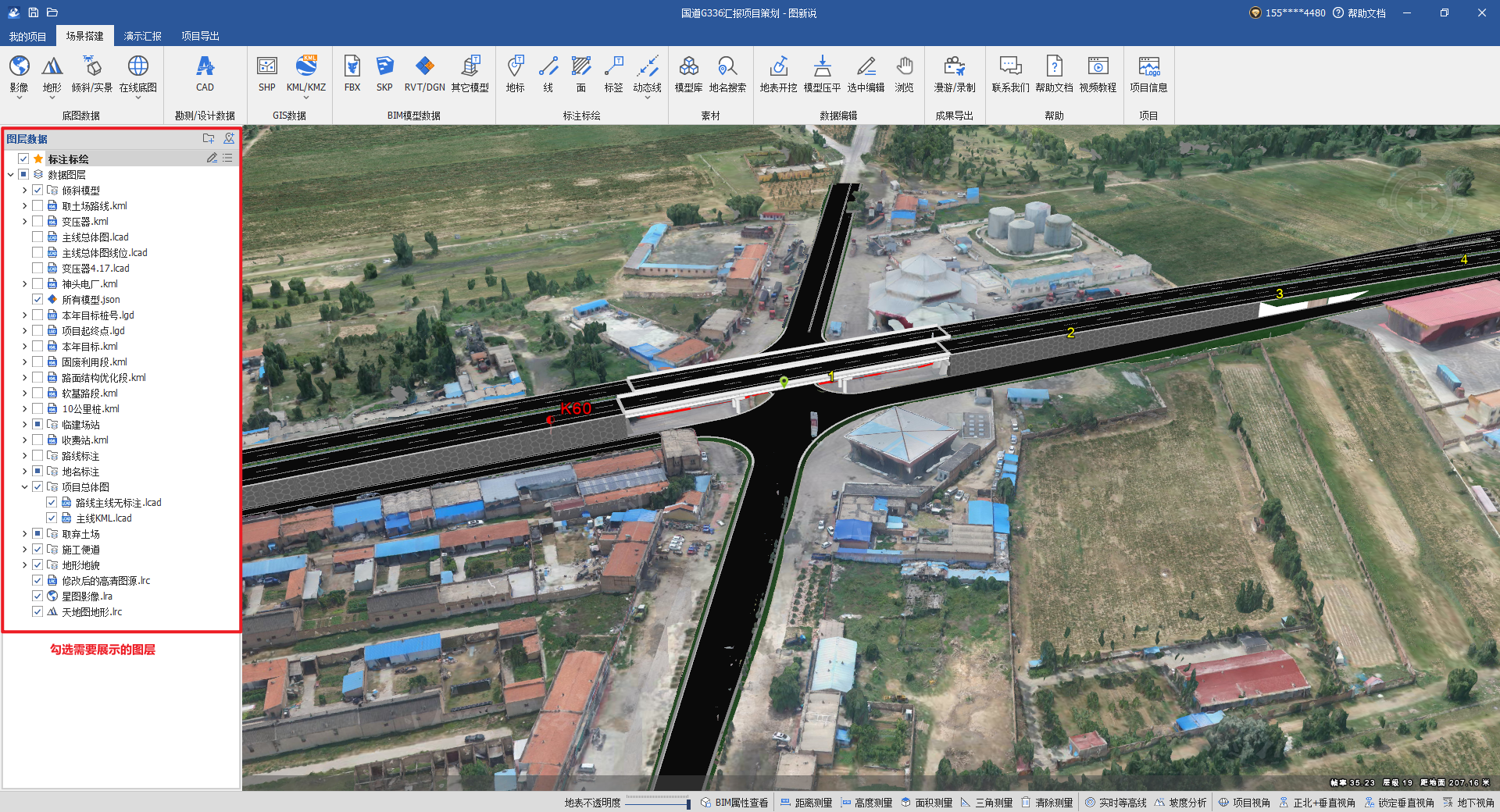 在图新说软件中加载地形、影像、BIM模型、CAD设计数据、倾斜模型、KML等数据进行融合展示,并在此基础上搭建三维PPT汇报内容,以此进行方案讲解。